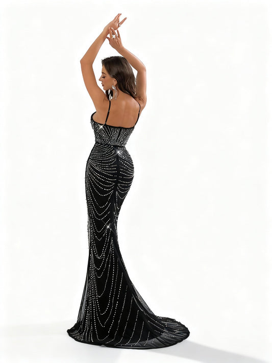 Stalluxe | Schwarzes Abendkleid mit Strass und Meerjungfrauen-Saum