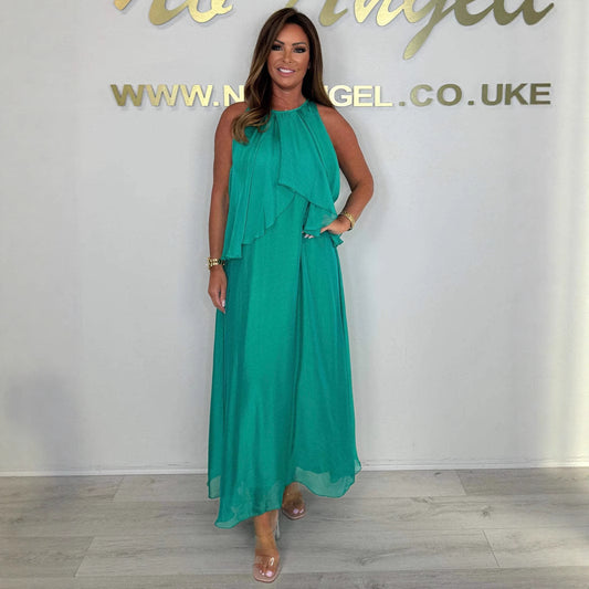 Damen Elegantes langes Abendkleid mit fließendem Stoff und Schichten Stalluxe