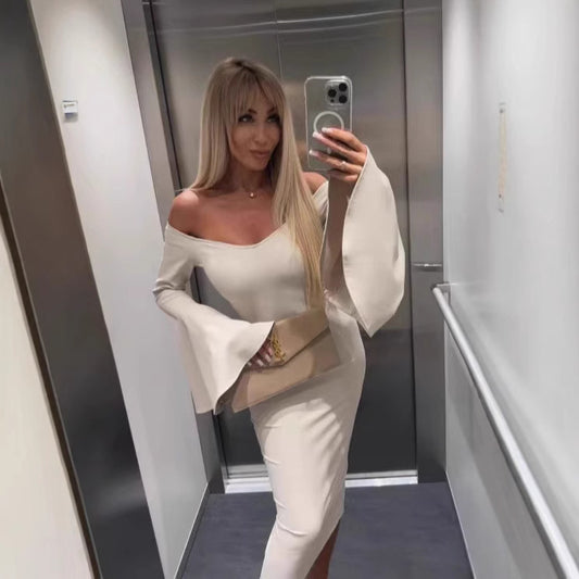 Damen Elegantes Langarmkleid mit weiten Ärmeln und Schlitz Stalluxe
