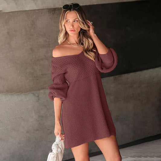 Damen Langärmliges Rippkleid mit Slit und Kragen Stalluxe