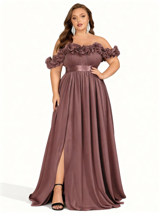 Stalluxe | Schulterfreies Langkleid mit Schlitz in Großen Größen