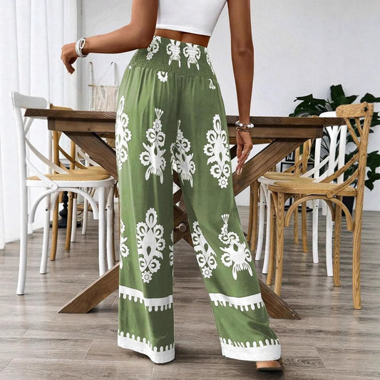 Damen weite Palazzo-Hosen mit elastischem Bund und dekorativem Blumenmuster Stalluxe