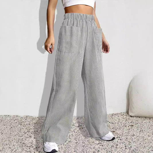 Damen Weite Sommerhose mit vertikalem Streifenmuster Stalluxe