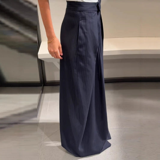 Damen Hochtaillierte Palazzo-Hose mit Faltenwurf und eleganten Streifen Stalluxe