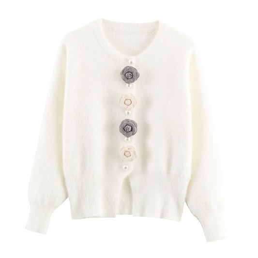 Damen Kuschelige Strickjacke mit stilvollen Blumendetails Stalluxe