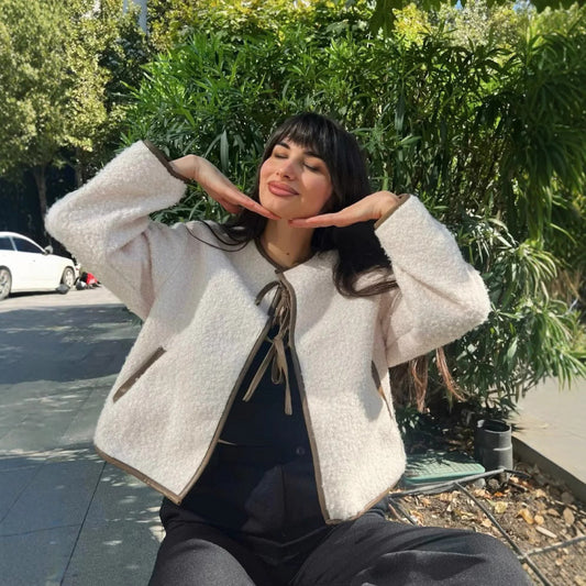 Damen kuschelige Fleecejacke mit eleganten Bindebändern Stalluxe