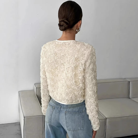 Damen kurz geschnittene Blütenjacke mit floralem Design und sanften Texturen Stalluxe