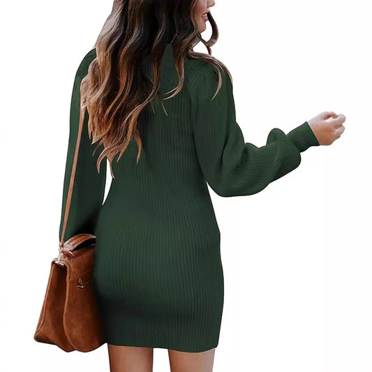 Damen Strickkleid mit hohem Kragen und feinem Rippenmuster Stalluxe
