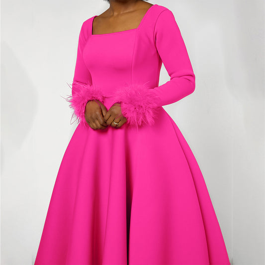 Damen Elegantes Kleid mit quadratischem Ausschnitt und farbenfrohen Fütterungsdetails Stalluxe