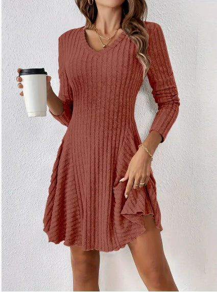 Damen Strickkleid mit V-Ausschnitt und Rüschendetails Stalluxe