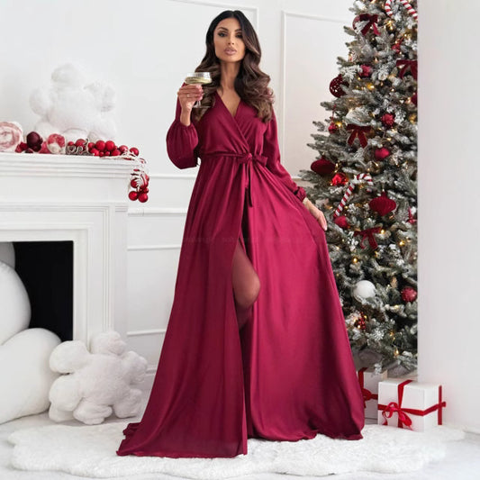 Damen Elegantes Wickelkleid mit tiefem V-Ausschnitt und seitlichem Schlitz Stalluxe