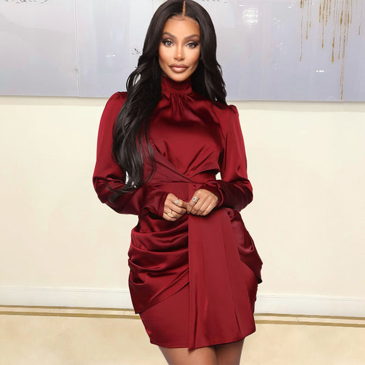 Damen Elegantes Minikleid mit hochgeschlossenem Ausschnitt und asymmetrischem Schlitz Stalluxe