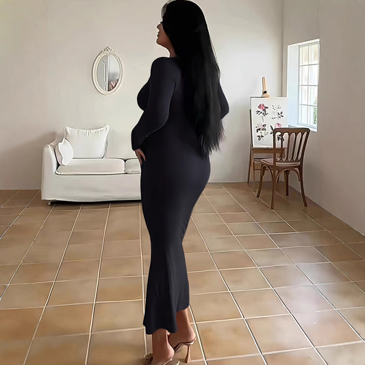 Damen Rippstrick-Midikleid mit Ausschnitt und langem Ärmel Stalluxe