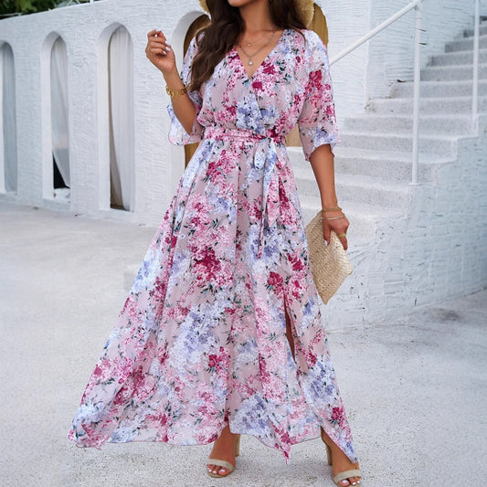 Damen Maxikleid mit eleganten Floraldesign und schmeichelndem Schlitz Stalluxe