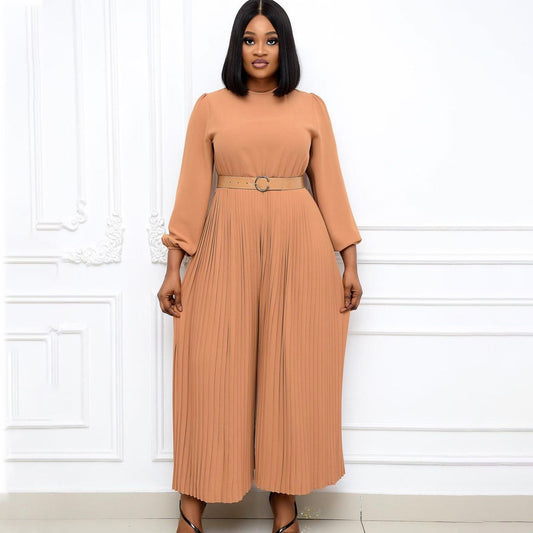 Damen Plissee Jumpsuit mit elegantem Gürtel und schwingenden Ärmeln Stalluxe