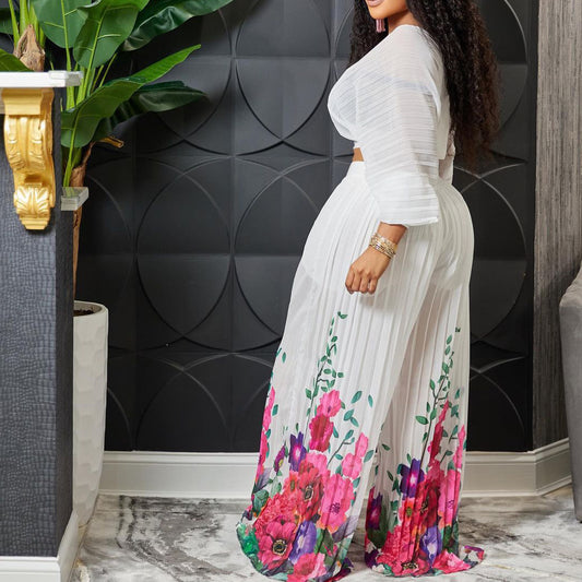 Damen Plissee Jumpsuit mit floralem Print und weitem Bein Stalluxe