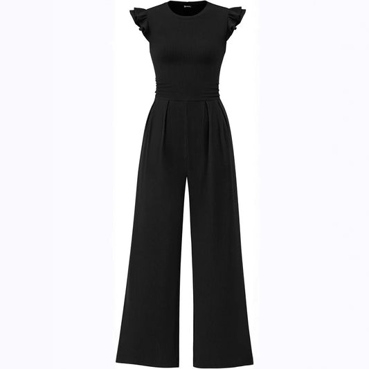 Damen eleganter Jumpsuit mit schwingenden Ärmeln und tailliertem Gürtel Stalluxe