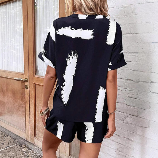 Damen modischer Kurz-Jumpsuit mit abstrakt gemustertem Oberteil und elastischem Bund Stalluxe