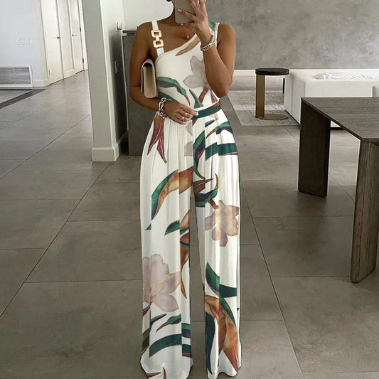 Damen Eleganter Jumpsuit mit floralem Design und asymmetrischem Träger Stalluxe