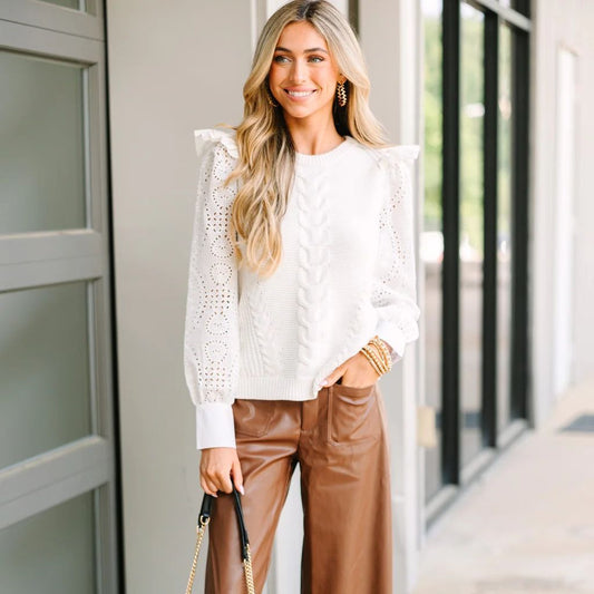 Damen eleganter Strickpullover mit Rüschendetails und Lochmuster Stalluxe