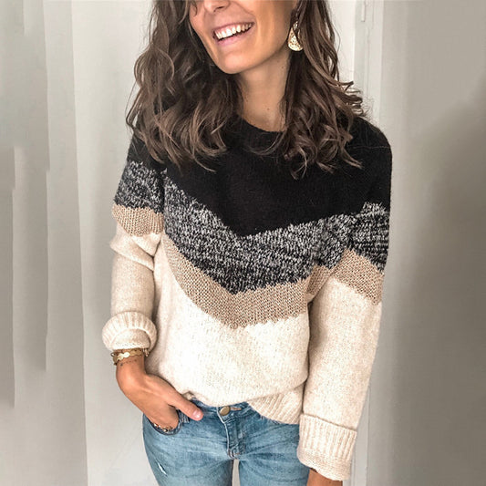 Damen Modischer Pullover mit hohem Kragen und gestreiften Ärmeln Stalluxe
