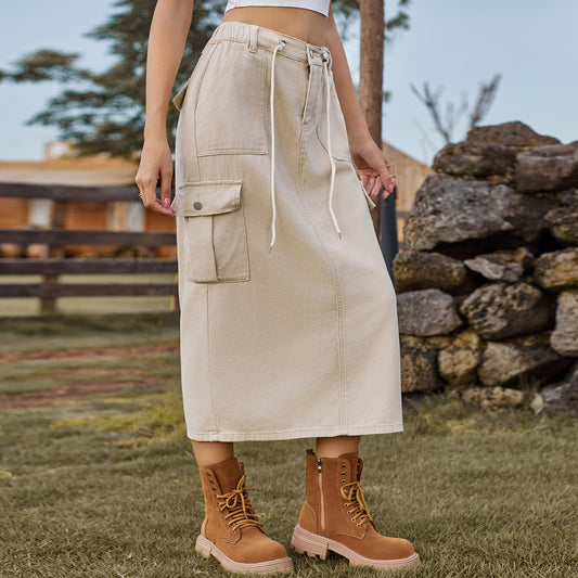 Damen Cargo-Midirock mit praktischen Seitentaschen und verstellbarem Kordelzug Stalluxe