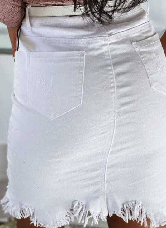 Damen Jeansrock im modischen A-Linien Schnitt mit Knopfdetails und fransigem Saum Stalluxe