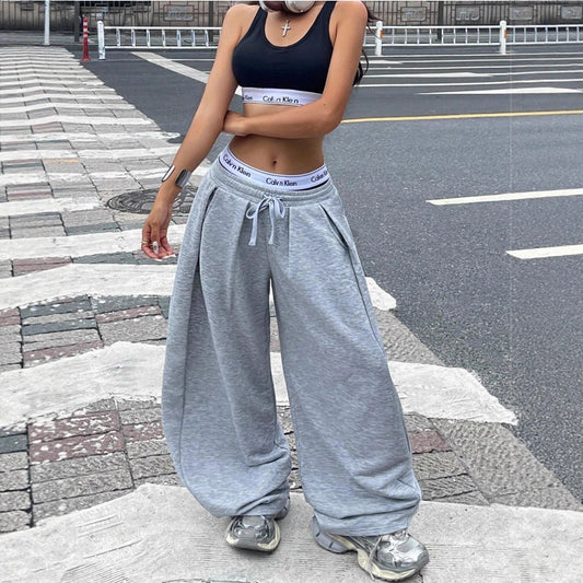 Damen weite Freizeit-Sweatpants mit Kordelzug und elastischem Bund Stalluxe