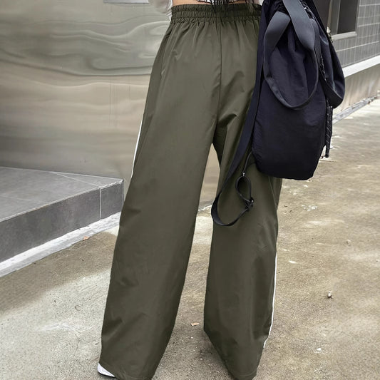 Damen Sportliche weit geschnittene Freizeithose mit elastischem Bund und seitlichen Streifen Stalluxe