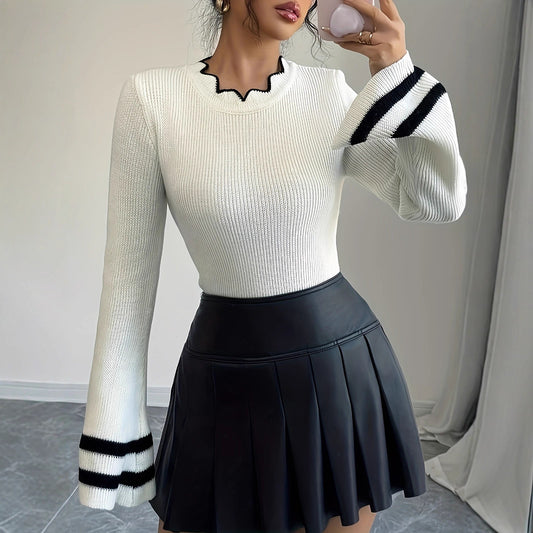 Damen lässiger Sweater mit auffälligem Streifenmuster und elastischen Bündchen Stalluxe