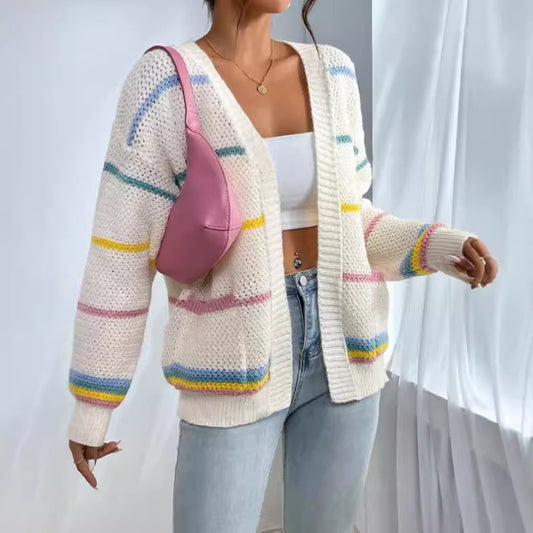 Damen Strickjacke mit buntem Streifenmuster und lässigem Schnitt Stalluxe