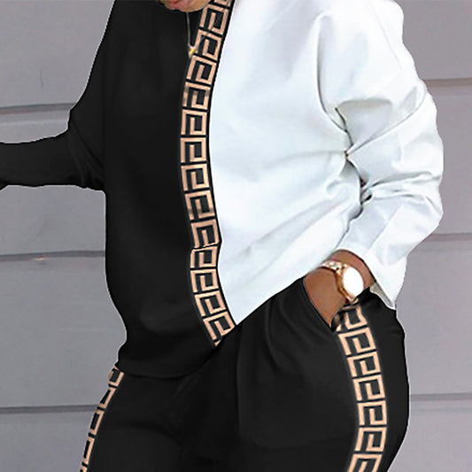 Damen Lässiges Sportanzug-Set mit Kontrastdesign und elastischer Taille Stalluxe