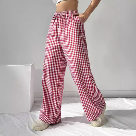 Damen Weitgeschnittene Viskosehose mit Karomuster Stalluxe