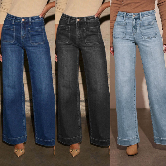 Damen Weit geschnittene Jeans mit hohen Taschen und elegantem Auftritt Stalluxe