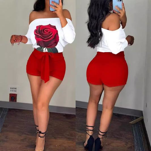 Damen Off-Shoulder Oberteil mit floralem Druck und hochgeschnittenem Rock Stalluxe