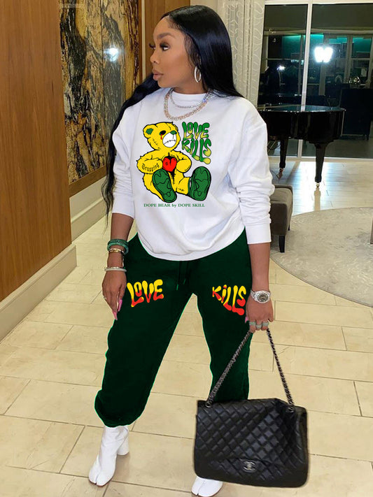 Damen lässige Weitgeschnittene Sweatpants mit grafischem Druck Stalluxe