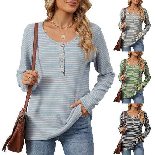 Damen gestreiftes Langarmshirt mit Knopfleiste und lässiger Passform Stalluxe
