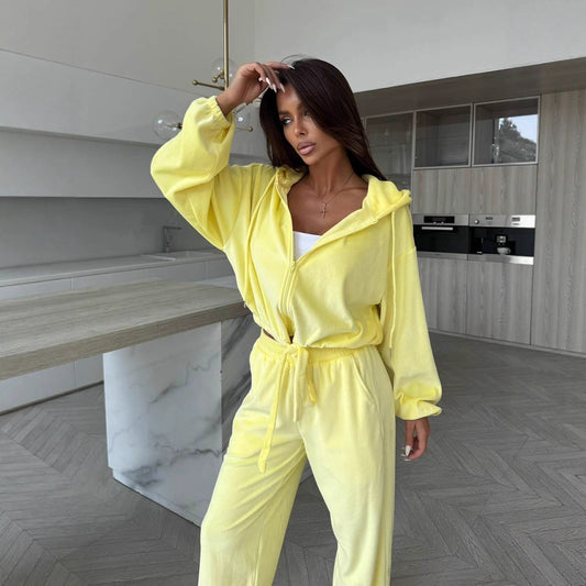 Damen bequemer Cropped Hoodie mit elastischem Bund und lässiger Jogginghose Set Stalluxe