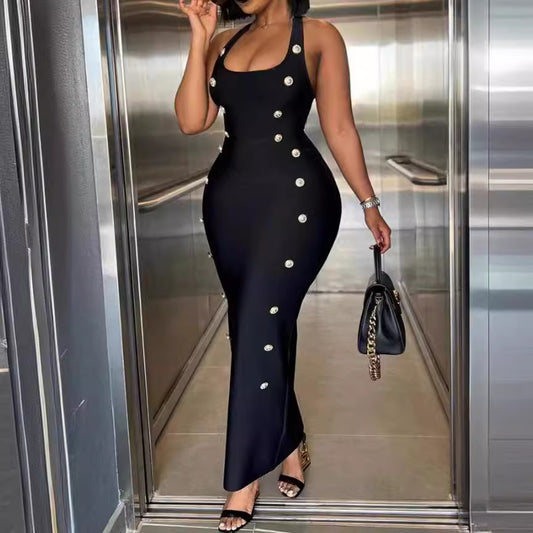 Damen Figurbetontes Maxikleid mit Knopfdetails Stalluxe