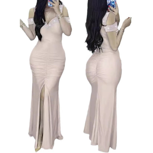 Damen Figurumspielendes Abendkleid mit schulterfreien Ärmel und Schlitz Stalluxe