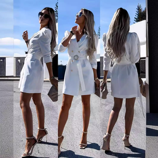 Damen Blazer-Kleid mit tailliertem Schnitt und abnehmbarer Taillengürtelschnalle Stalluxe