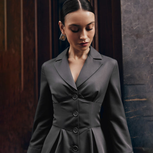 Damen Blazer-Kleid mit plissiertem Rock und eleganten Knopfdetails Stalluxe