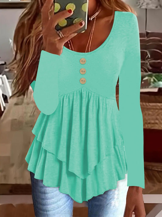 Damen Langarm Blusenshirt mit mehrlagigem Design und dekorativen Knopfdetails Stalluxe