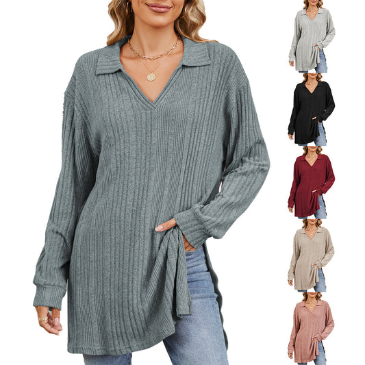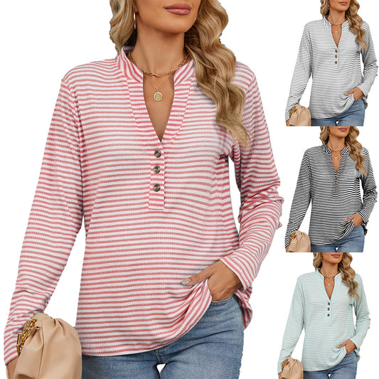 Damen Langarmshirt mit hochwertiger Struktur und V-Ausschnitt Stalluxe