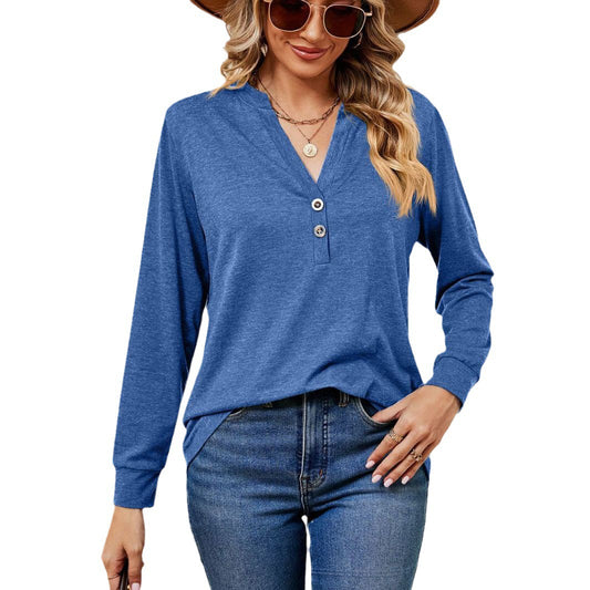 Damen Langarmtop mit modischem Henley-Ausschnitt und Knopfdesign Stalluxe