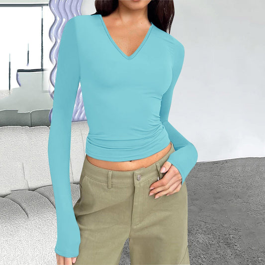 Damen Langarmshirt mit V-Ausschnitt und figurbetonendem Schnitt Stalluxe
