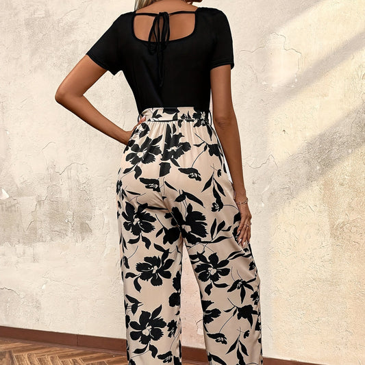 Damen Jumpsuit mit floralem Oberteil und weit geschnittenen Hosen Stalluxe