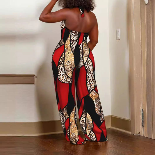 Damen Jumpsuit mit elegantem Wickeloberteil und farbenfrohem Blattdesign Stalluxe