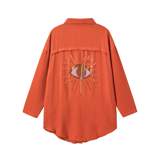 Damen Langarm-Hemdjacke mit auffälligem Augenprint Stalluxe