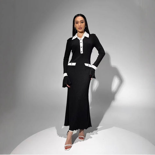 Damen Langarm-Maxikleid mit figurbetontem Schnitt und hohem Kragen Stalluxe